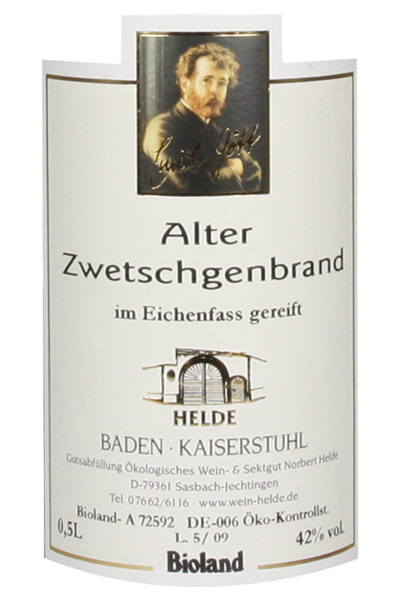 Extra für diesen edlen Zwetschgenchnaps reifen auf den Kaiserstuhlwiesen spezielle Zwetschgensorten. In der Tradition des Gutes Helde werden sie gepflegt, weil sie ein seltenes und besonderes feingliedriges Bittermandelaroma (Marzipan) hervorbringen.