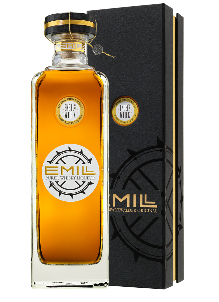 EMILL Engelswerk ist ein purer Whisky-Likör. Er ist ein echtes Schwarzwälder Original, gebrannt und gelagert in der historischen Scheibel Mühle in Kappelrodeck im Achertal. Ganz anders als bei Likören üblich, verzichten wir in der EMILL ENGELSWERK Rezeptur bewusst auf die Zugabe von weiteren Aromen oder Zutaten. ENGELSWERK ist eine Whisky-Cuvée, abgerundet zu einem puren Whisky-Likör.
