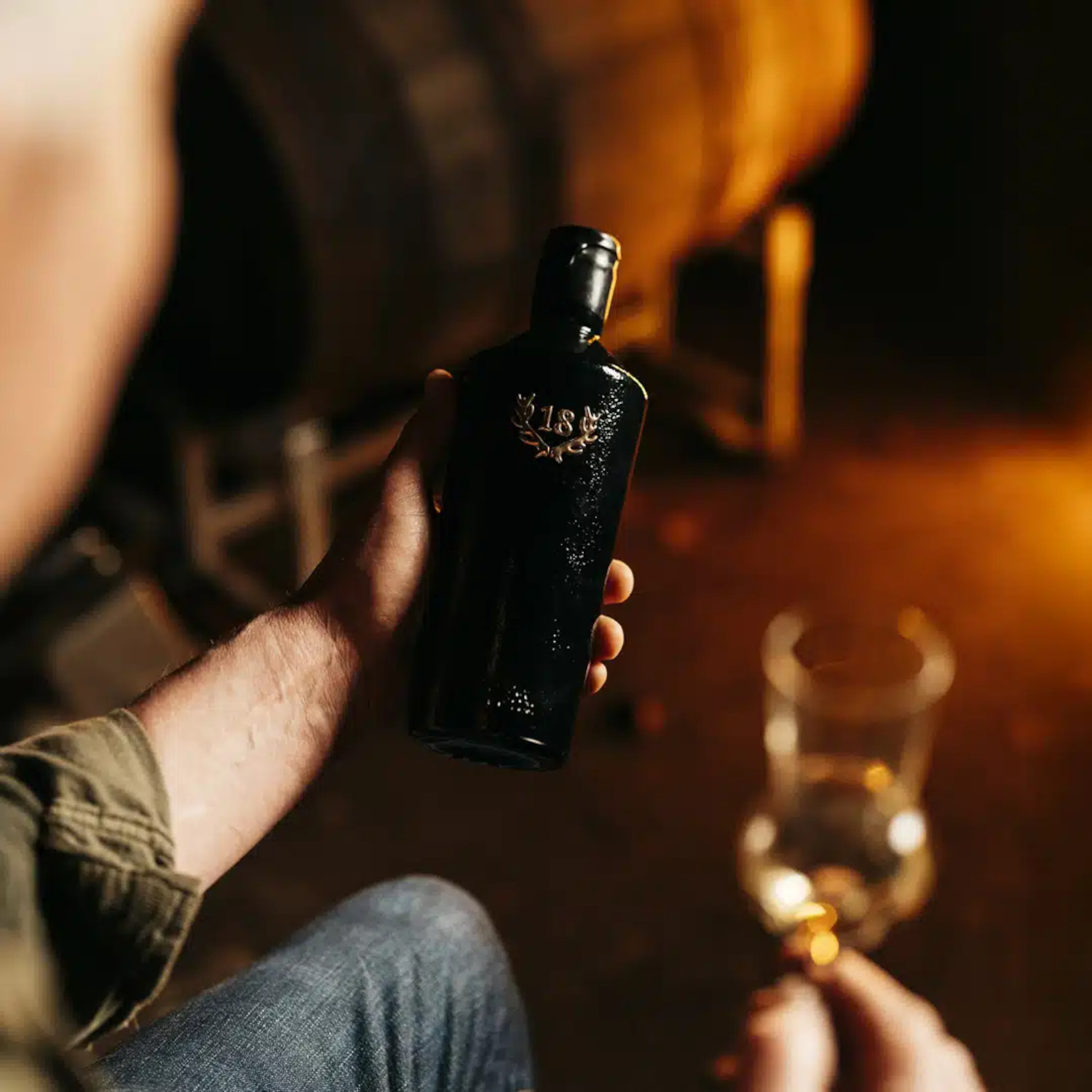 Geruch: Vielschichtig und tief. Reife Birne mit würzigen Akzenten, getrocknetes Heu, leicht erdige Noten und ein Hauch von Rauch und Torf vom Ex-Laphroaig-Fass. Dazu Anklänge von Nüssen, weißem Pfeffer und einer feinen, fast balsamischen Kräuterwürze.