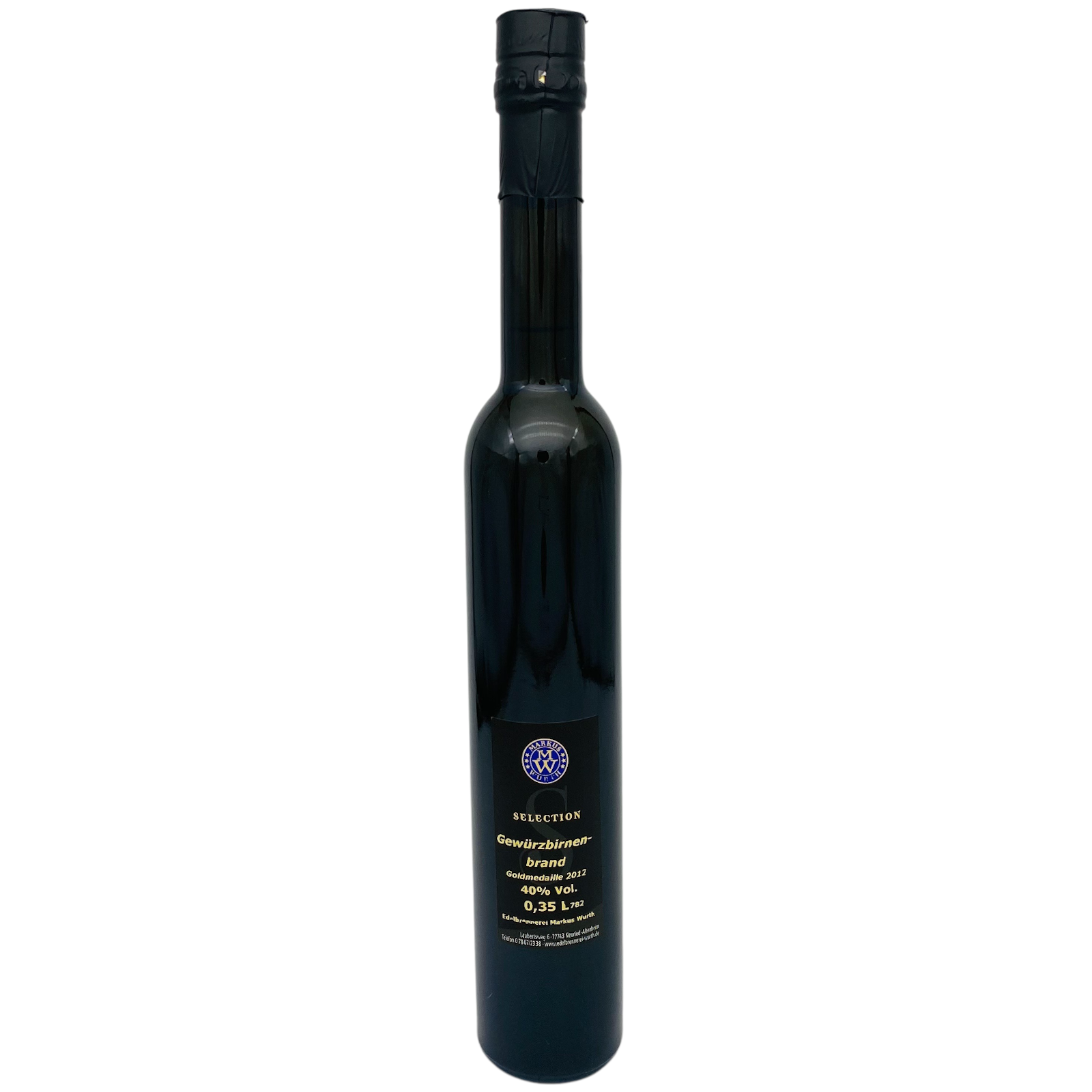 Die Gewürzbirne ist eine sehr alte regionale gerbstoffhaltige Birnensorte, die früher als Dörrbirne oder im Trinkmost Verwendung fand. Sie reift Ende Juli/Anfang August, ist sehr kleinfruchtig, grün/gelb bis schokoladenbraun und verdirbt sehr schnell. Deshalb muss diese Birne über 2 Wochen jeden Tag handverlesen geerntet werden, um ihre einzigartige Frische zu gewährleisten.