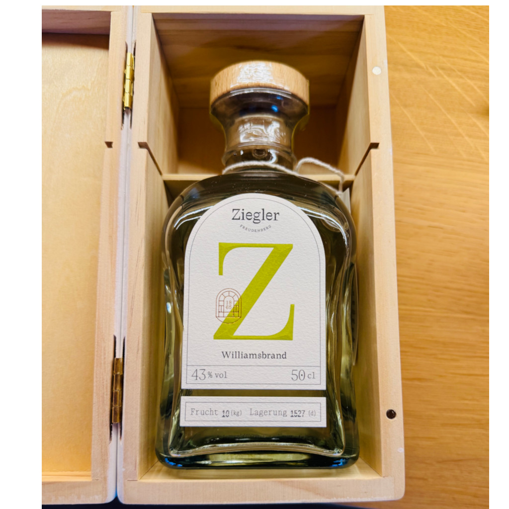 Die gute, alte Williamsbirne segelt bei uns hart am Wind. Und zwar nicht auf ihrem recht kurzen Weg zu uns in die Brennerei, sondern bei ihrem Einsatz. Denn sie bildet ganz nach dem Motto "living on the edge" erst ganz am Ende der Destillation ihr ganz typisches, heißgeliebtes Aroma. Damit dieser Vorgang perfekt ist, haben wir das Prozedere jahrzehntelang verfeinert und ausgelotet.