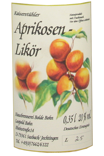 Feiner Kaiserstühler Aprikosen Likör der Brennerei Leopold "Bolde" Bohn.