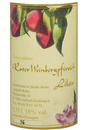 Eine absolute Besonderheit ist dieser Weinbergpfirsich Likör vom Kaiserstuhl. Der Edelbrenner Bolde Bohn hat diesen edlen Likör kreiert.
