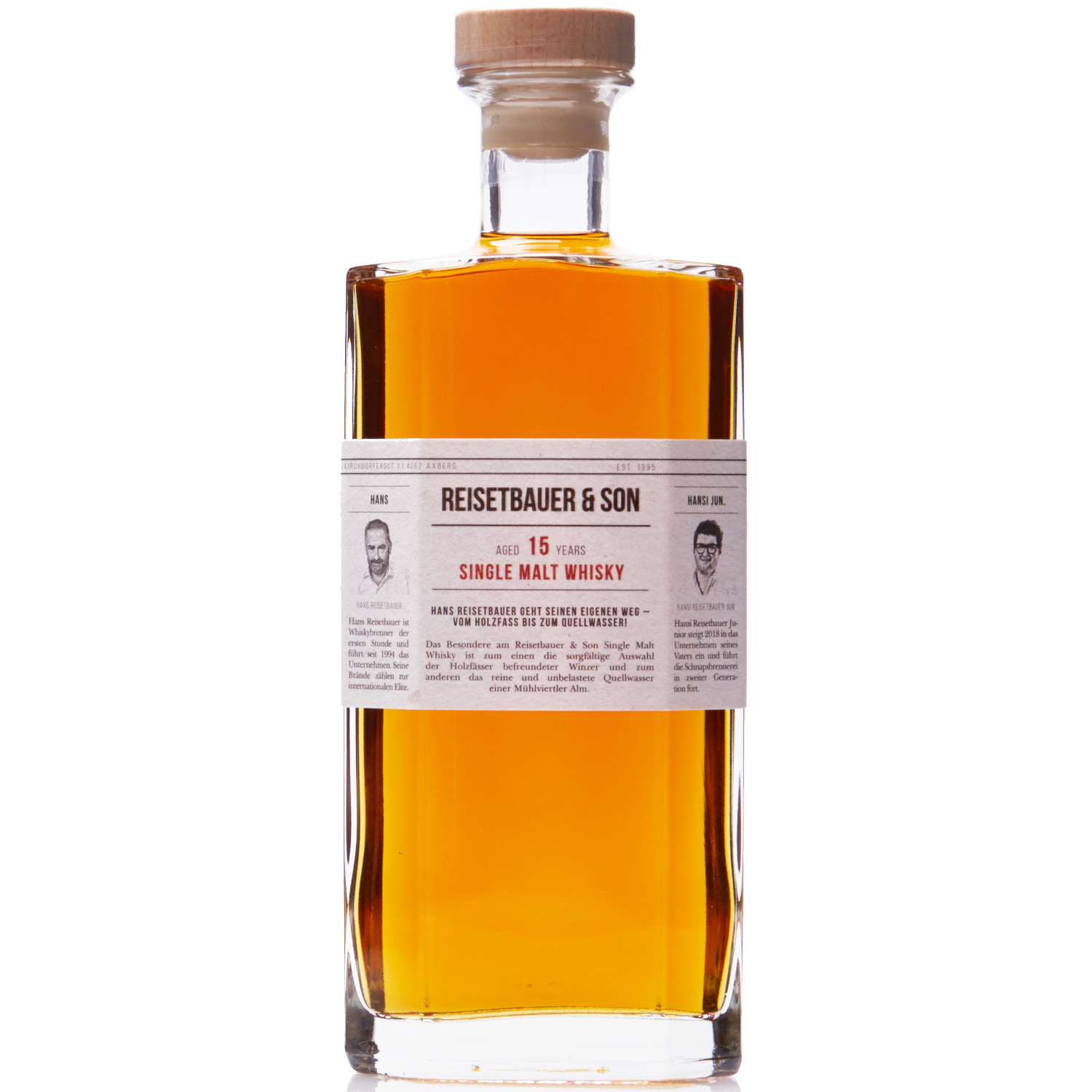 Sein Vater ist der Grandseigneur der Schnapsbrenner und gemeinsam sind die beiden ein Duo mit vielen Ideen, das sich perfekt ergänzt. So hat auch der Single Malt seinen neuen, moderneren "Look" bekommen und darf sich stolz "Reisetbauer & Son" nennen.