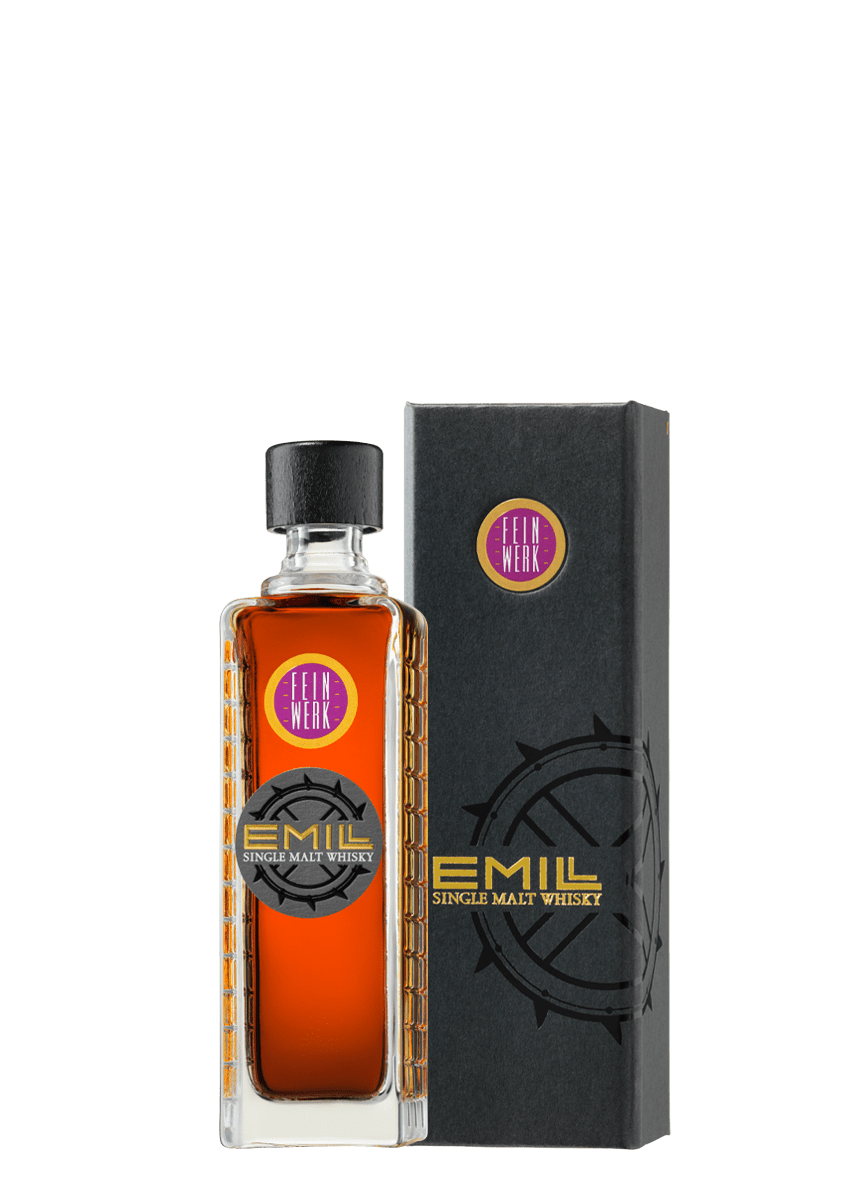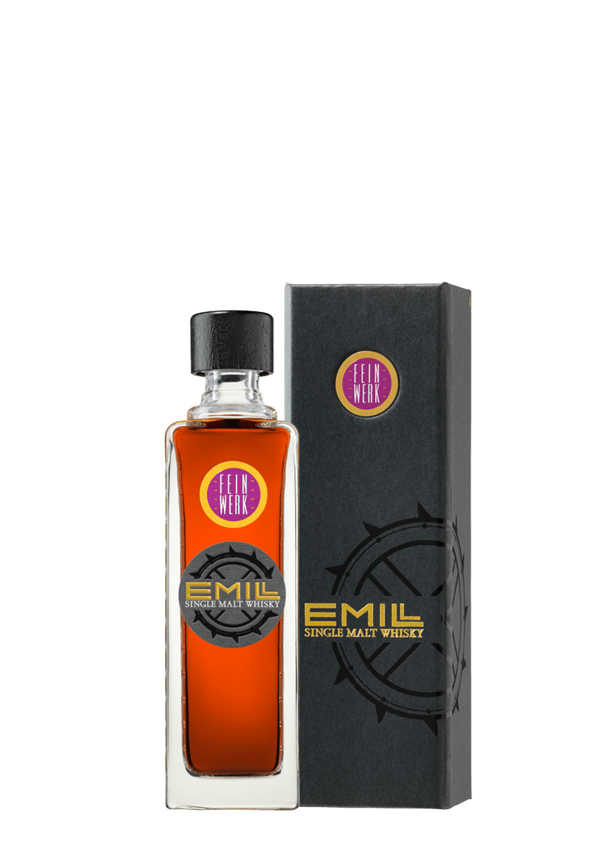 EMILL Feinwerk ist ein Single Malt Whisky mit Finish im Portwein-Fass. Er ist ein echtes Schwarzwälder Original, gebrannt und gelagert in der historischen Scheibel Mühle in Kappelrodeck im Achertal.