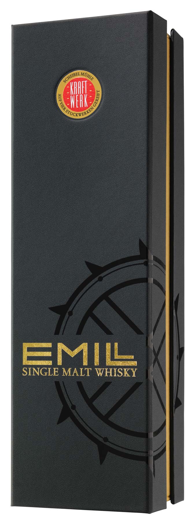 Der Name EMILL, setzt sich zusammen aus dem Vornamen „Emil“, Großvater von Michael Scheibel und Firmengründer der Brennerei, und dem englischen Wort „mill“, was übersetzt Mühle bedeutet. „Eine Hommage an unseren Firmengründer und den Ort, an dem es mit uns und den Obstbränden angefangen hat,“ erklärt der Inhaber. Die edlen Karaffen wurden speziell für das Produkt designt und unterstreichen den einzigartigen Charakter des Schwarzwälder Whiskys, auch wenn die Ausstattung in diesem Wettbewerb nicht in die Bewertung eingeflossen ist.