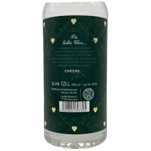 Ein unvergleichbarer Gin mit Himbeeren, Rhabarber, abgerundet von herrlichen Duftrosen aus Oma’s Garten.