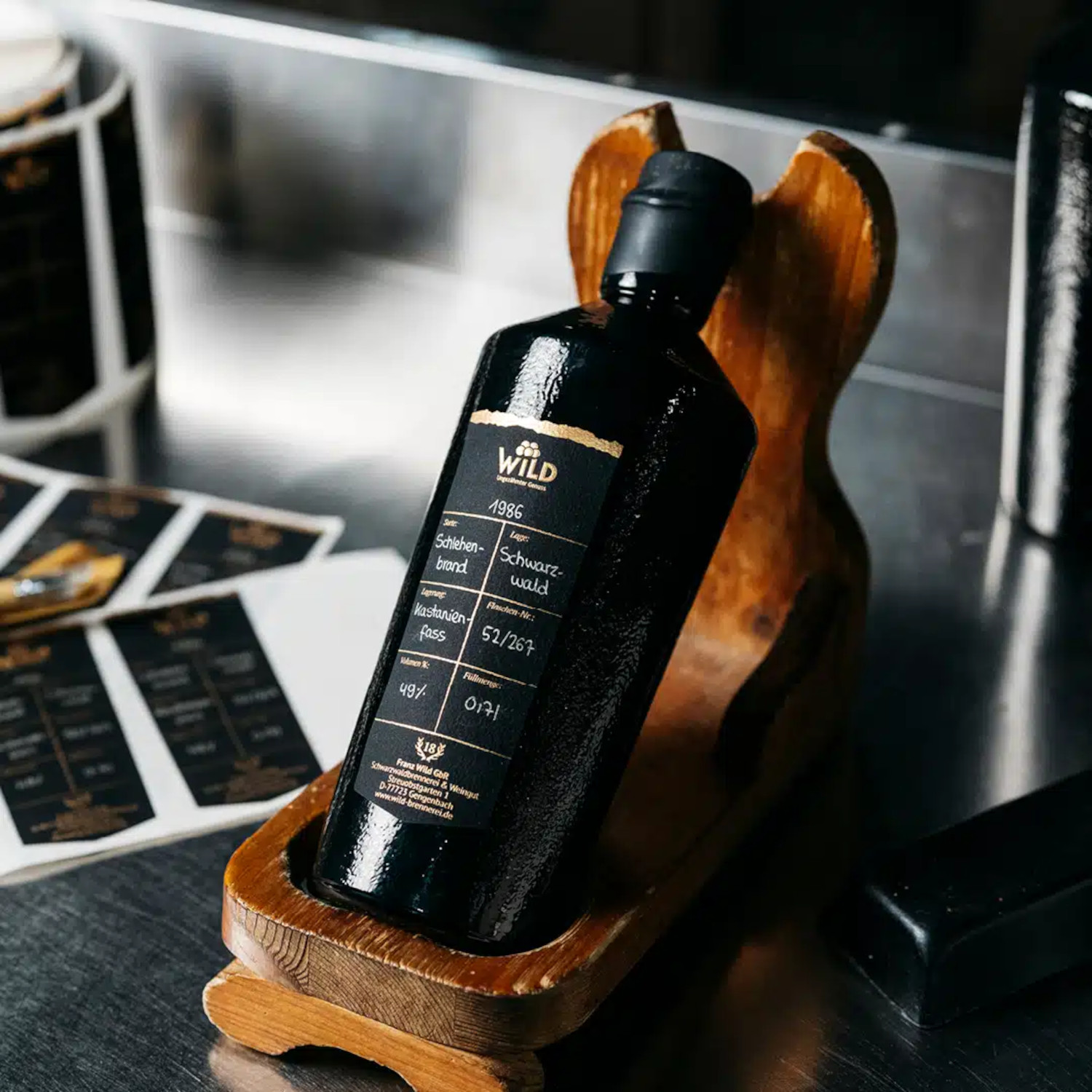 Dieser aromatisch tiefdunkle Brand von der wilden Schlehe reift nunmehr seit 35 Jahren in den alten Bergkellern unserer Destillerie. Völlig eingestaubt und mit einem Naturkorken fest verschlossen, ist uns diese Rarität bereits vor vielen Jahren aufgefallen, weil auf einem dicken Papier auffällig viel zu diesem Destillat dokumentiert war. Opa Franz Wild Senior konnte sich noch ganz genau an diesen Edelbrand erinnern, er hatte eine ganze Lichtung der seltenen Wildfrüchte entdeckt, als er zusammen mit seiner Frau Hilda und den 5 Kindern eine Wanderung durch den Schwarzwald unternahm. Er entschloss sich, die Früchte zu ernten und sie zu destillieren. Nach der Destillation hatte er das gebrauchte Kastanienfass mit „Herzstück“ beschriftet, dieser Begriff wurde mehr als 3 Jahrzehnte später die Inspiration für den Namen unserer Premium-Weine. Die Konzentration dieses Edelbrandes ist atemberaubend, leider gibt es nur sehr wenige Flaschen dieses besonderen Jahrgangs.